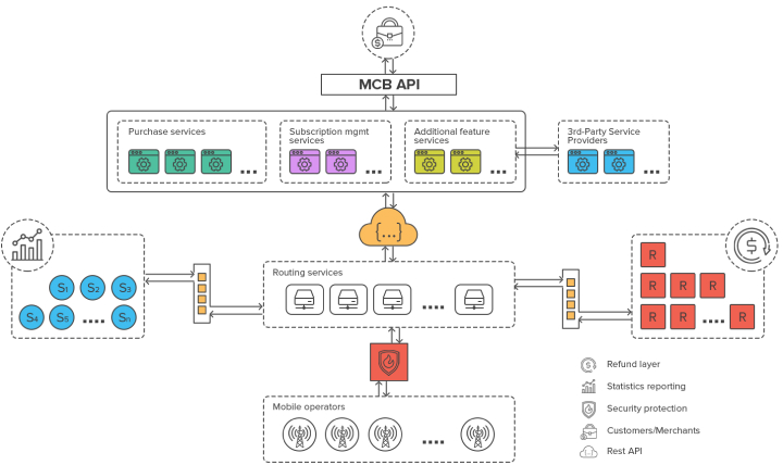 the Mobile Payment Gateway is connected through more than 30 mobile operators in Europe having their proprietary protocols.